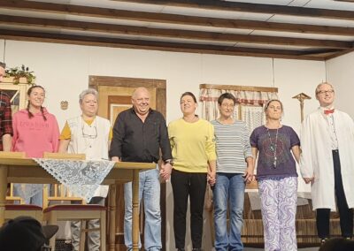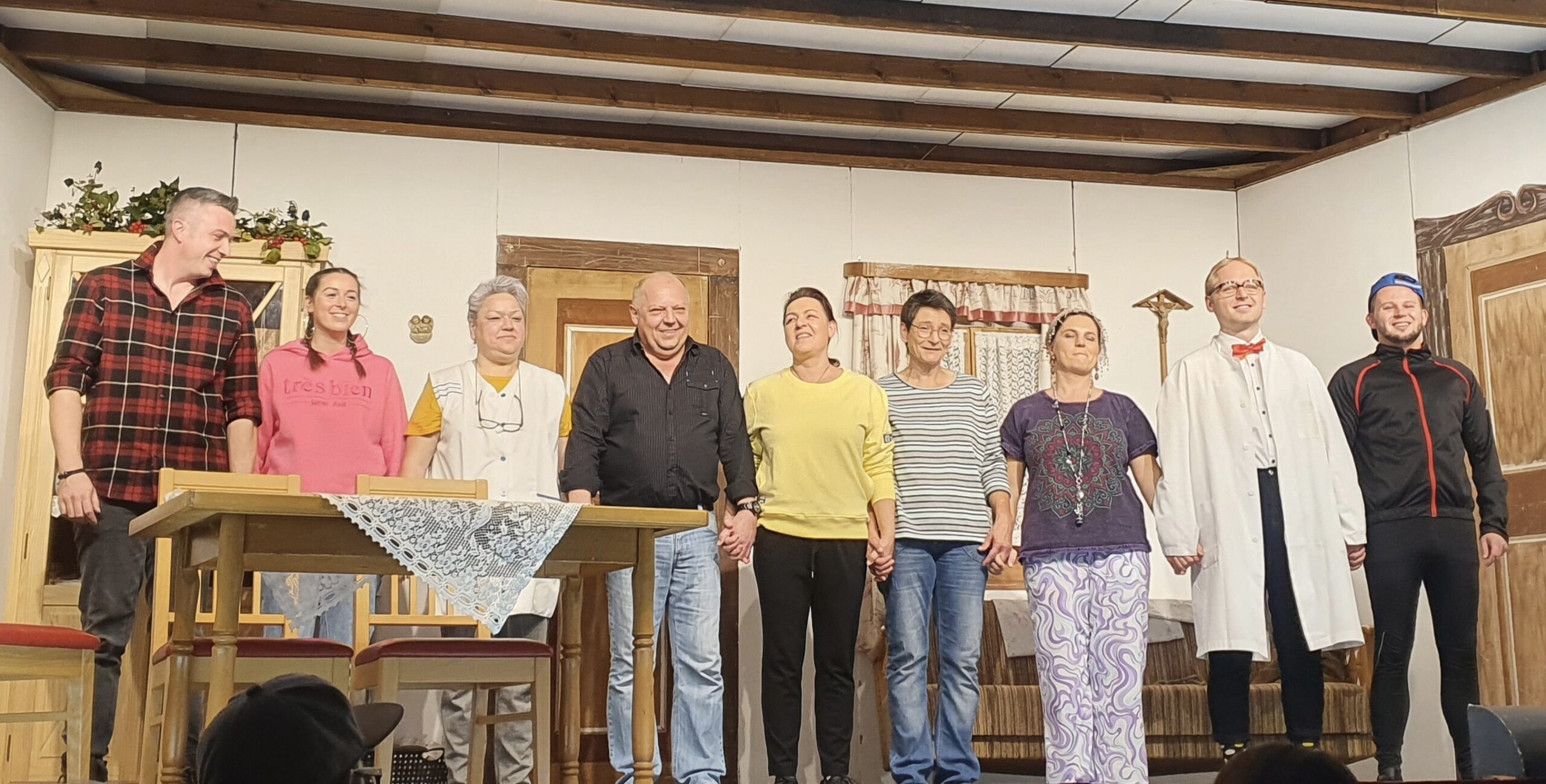 Um Regie und Organisation kümmern sich Lea Wagner, Lena Pollinger sowie Lydia Schmitz und Roland Wagner, um die Maske und Requisite Sigrid Wagner.